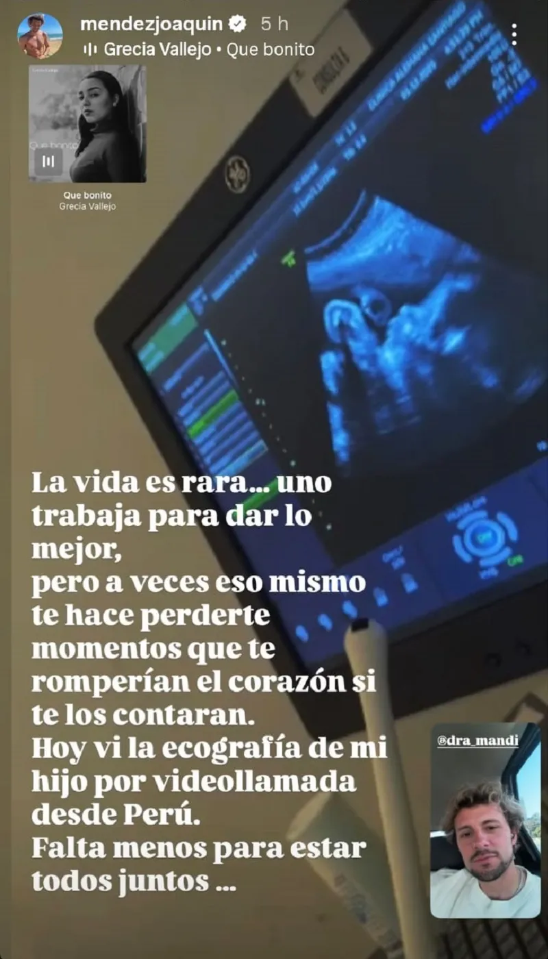 Y añadió: "Hoy vi la ecografía de mi hijo por videollamada desde Perú. Falta menos para estar todos juntos".