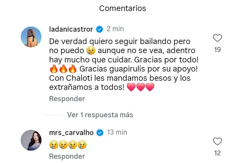 "Los voy a extrañar. Agradecida de todos en Fiebre de Baile", cerró.