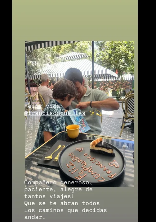 "Feliz vida, Francisco", partió señalando en una historia donde aparece el actor abriendo un regalo junto a su primogénito, evidenciando que celebraron todos juntos en un local.