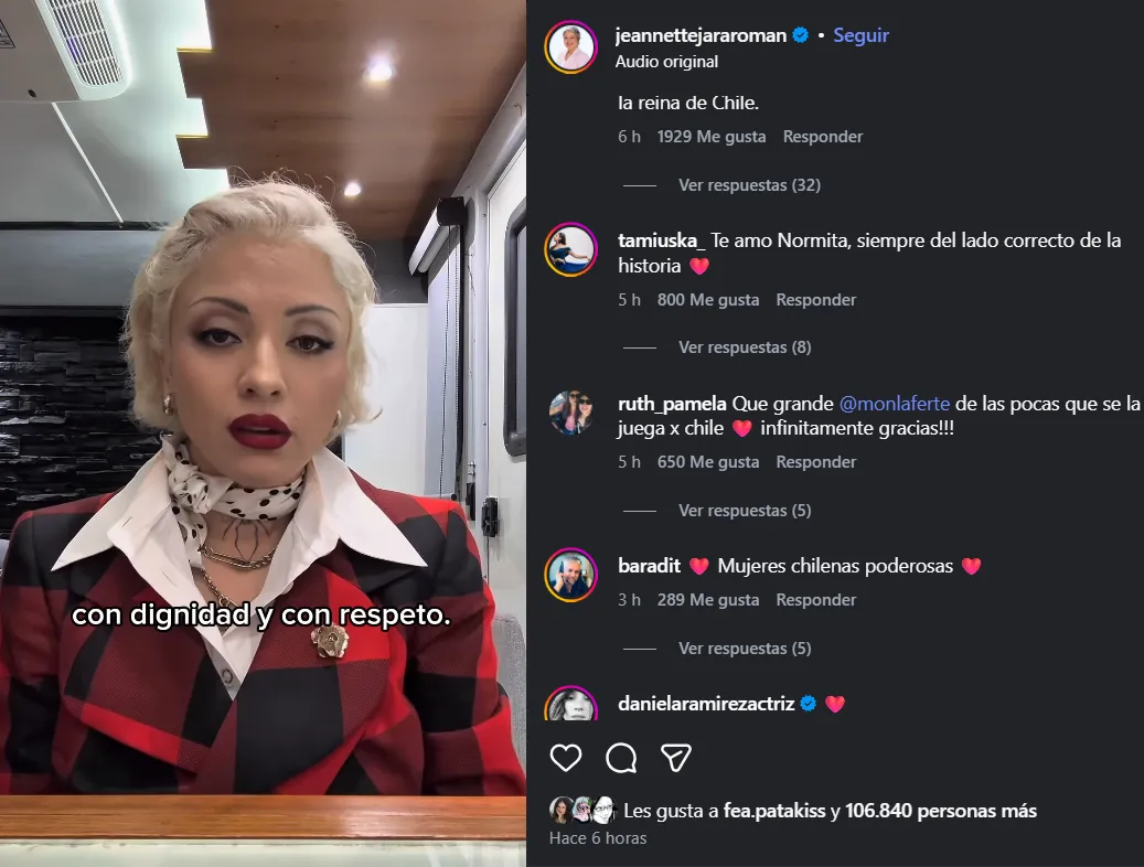 Ya en la parte final del mensaje, la cantante explicitó su apoyo directo a Jara, señalando: “Creo en la diversidad, por eso creo que podemos tal vez ser un poco distintos. Pero podemos vivir en el mismo país con nuestras diferencias, porque finalmente tenemos más cosas en común. Por eso creo en Jeannette Jara. Me gusta la claridad con la que entiende este país”.