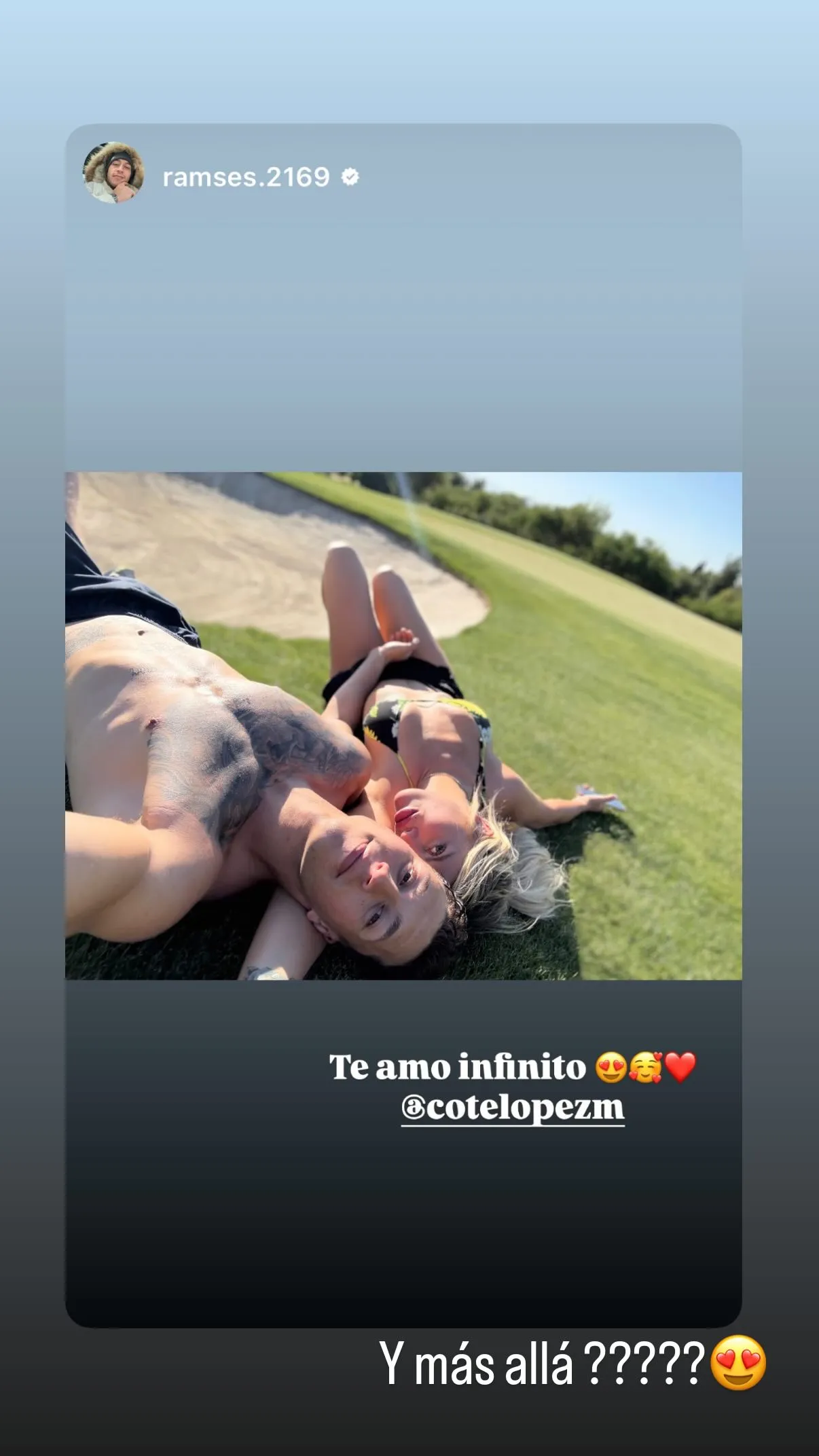 Finalmente, en otra historia posterior, el hombre aparece junto a empresaria al lado de una piscina con el siguiente mensaje: "Te amo infinito", cerró.