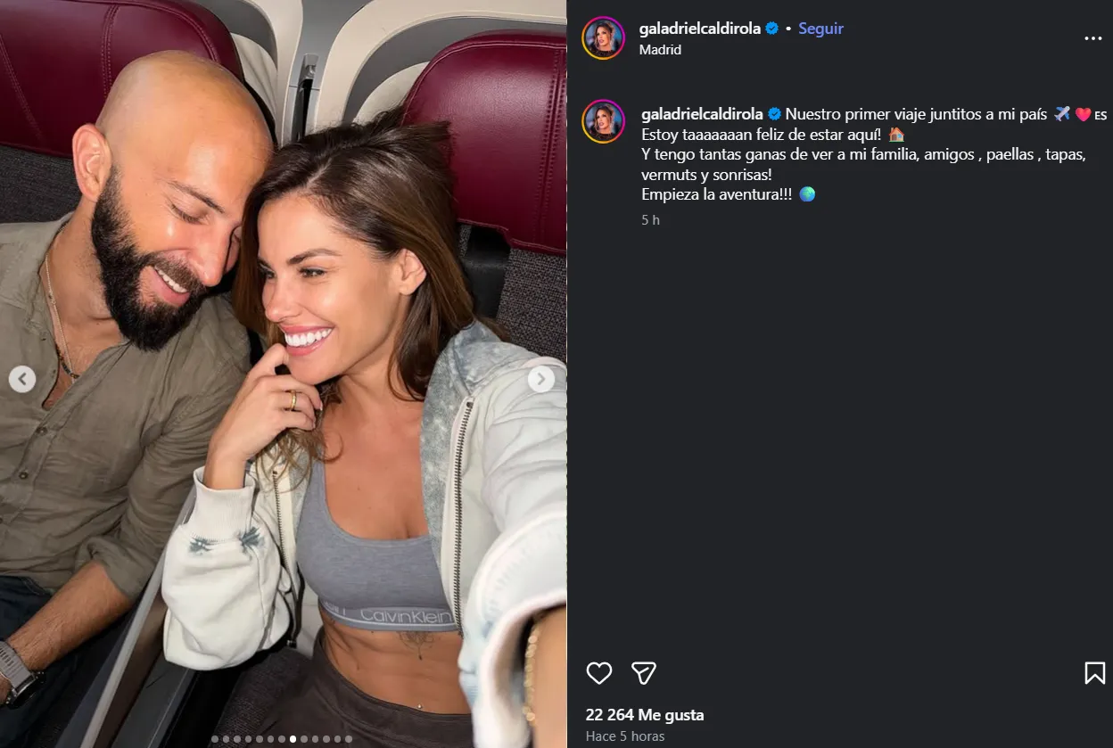 La modelo Gala Caldirola compartió en redes sociales un importante paso junto a su pareja, Cristóbal Sumar, empresario gastronómico. Reveló su relación en un viaje a España, su tierra natal, con fotos en Instagram. Caldirola expresó su felicidad por estar en su país y mencionó la emoción de reunirse con su familia, amigos y disfrutar de la comida local.