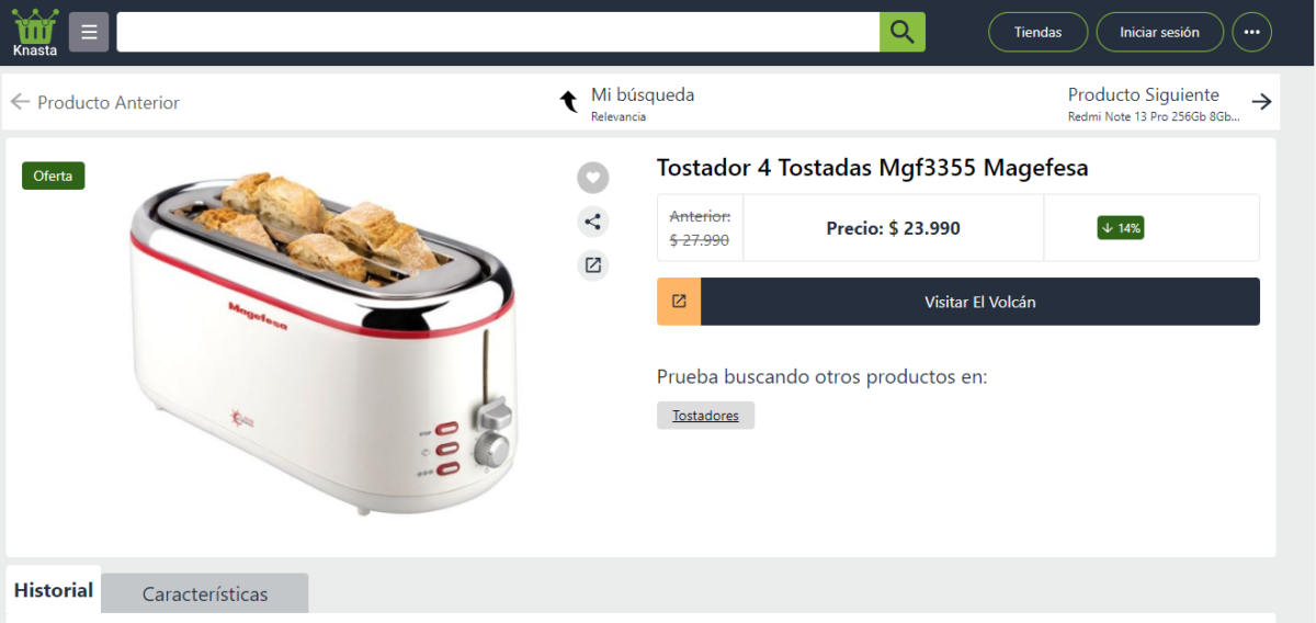 Para revisarlo, debes buscar el producto, y en la descripción, aparecerá el porcentaje que ha aumentado o disminuido su precio en un periodo específico.