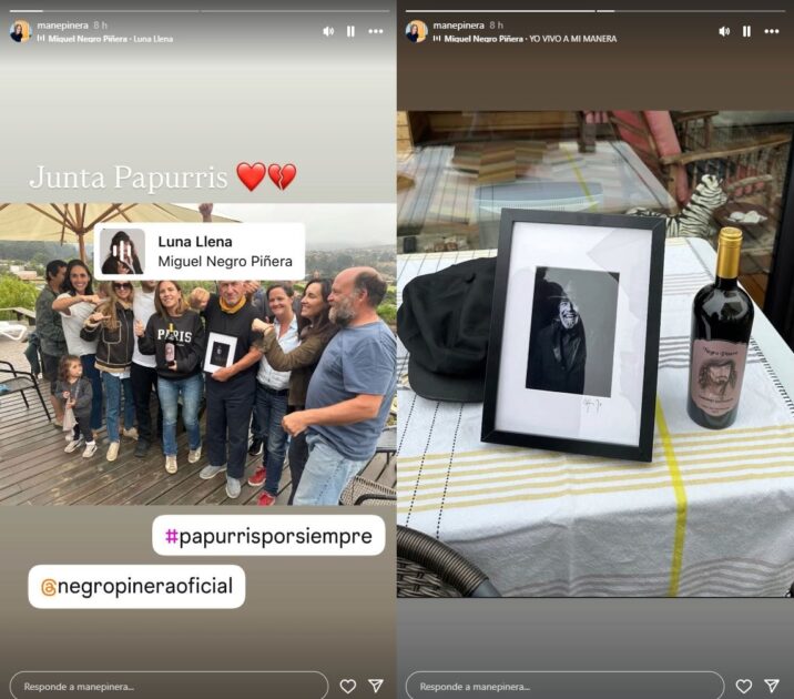 “Junta Papurris” , escribió en la imagen en la que aparece junto a familiares y amigos de Negro Piñera, la que musicalizó con su conocido éxito Luna Llena.