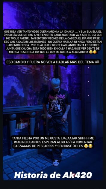 AK4:20 alzó la voz frente a rumores de infidelidad a Ignacia Antonia: “Gente de mierda resentida”