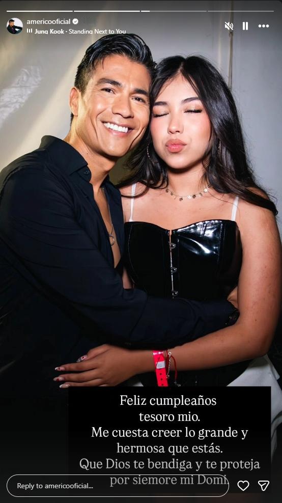 Aprovechando la ocasión, Américo compartió una foto junto a su hija en historias de Instagram. En la imagen se ve a ambos abrazados y en el saludo se muestra al cantante visiblemente emocionado por el crecimiento de la joven.
