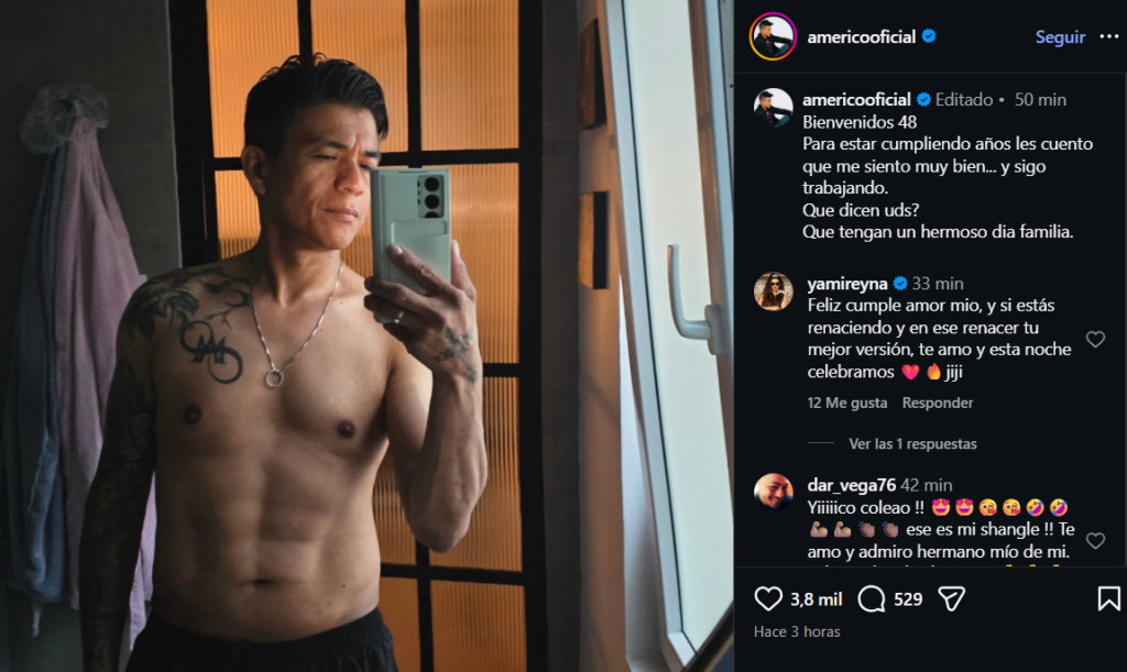 Este martes Américo no solo celebra Noche Buena, sino que también su cumpleaños. En efecto, el cantante cumple 48 años y decidió festejarlo en redes sociales con una foto mostrando su tonificado aspecto físico.