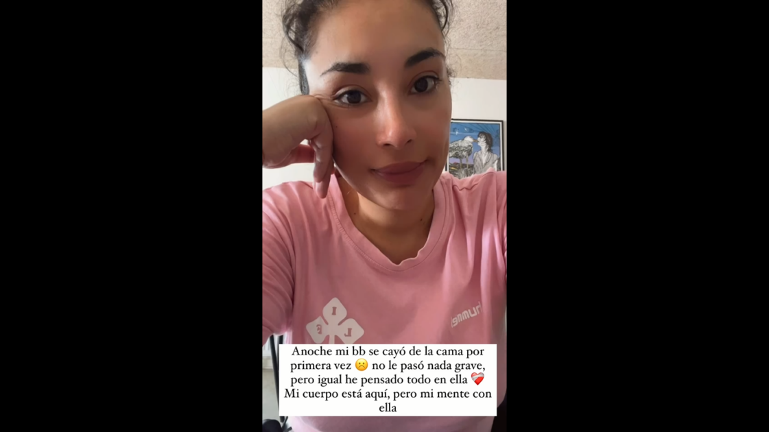 “Anoche mi bebé se cayó de la cama por primera vez. No le pasó nada grave, pero igual he pensado todo el día en ella. Mi cuerpo está aquí, pero mi mente con ella”, partió señalando en una de las historias.