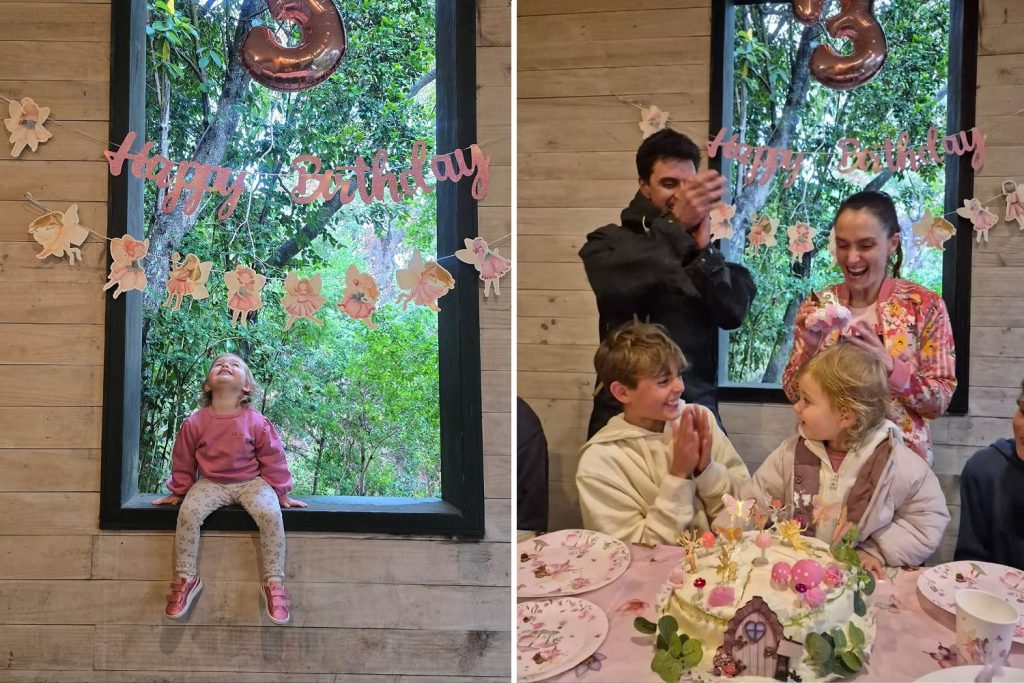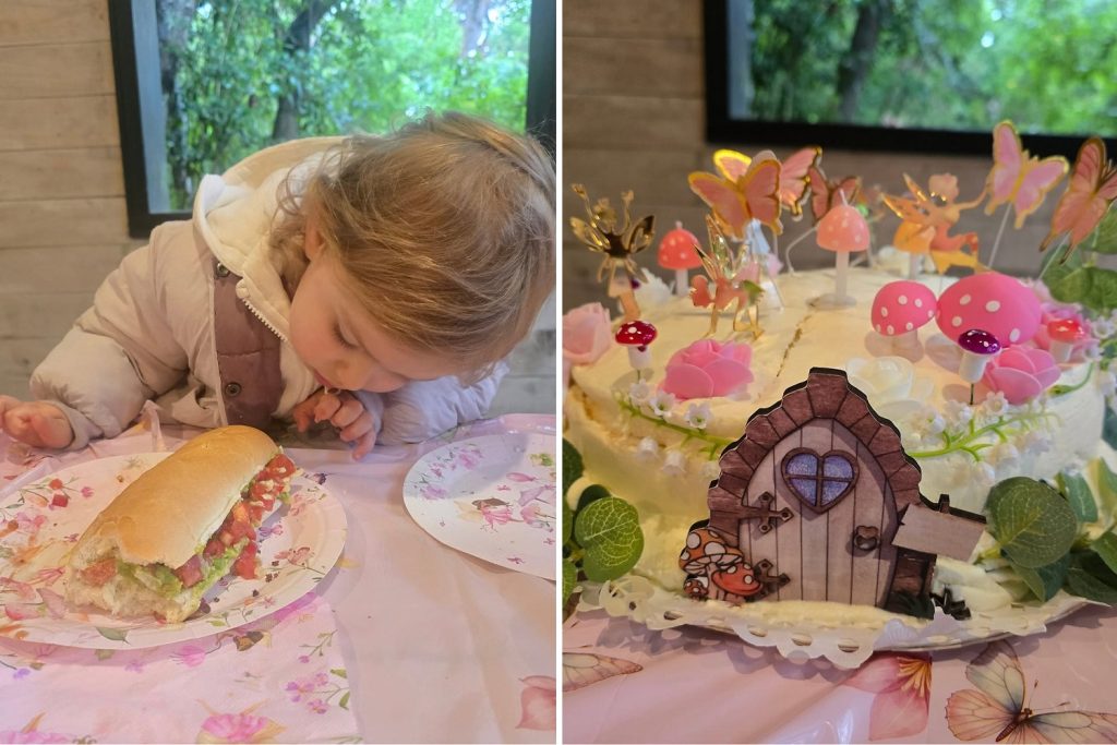La temática del cumpleaños de Rosa era como un cuento, con hadas del bosque, mariposas y flores.