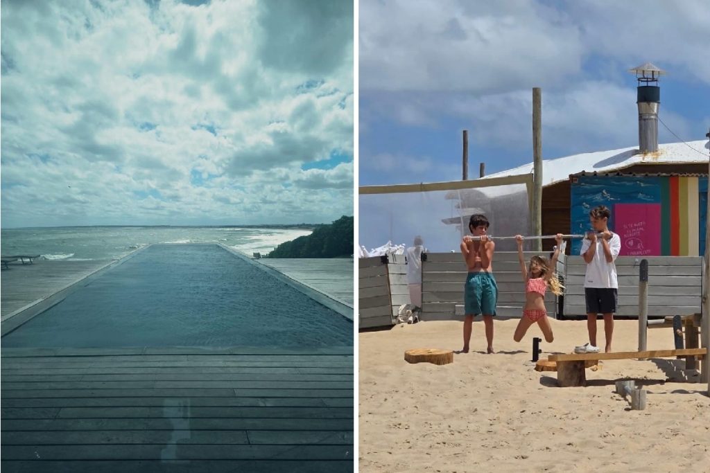 El álbum digital se abrió con una imagen panorámica de la playa, capturada desde una terraza de madera con vista directa al mar. Reposeras, una mesa circular y troncos dispuestos para una fogata componían la escena.