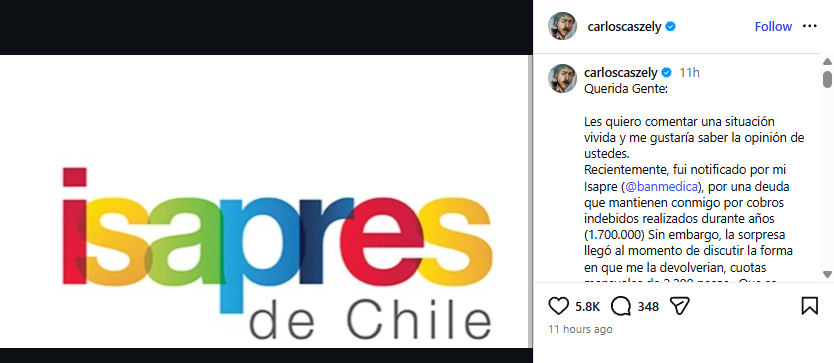 Hay que mencionar que, tal como recogió BioBioChile, la situación expuesta por el exfutbolista se enmarca en el proceso de devolución de excedentes establecido por la denominada Ley Corta de Isapres, normativa que entró en vigencia el 1 de septiembre de 2024.