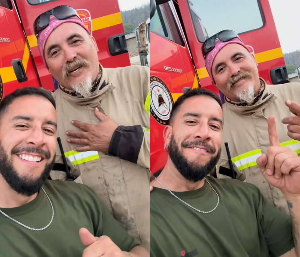 Hacia el final del video, aparece Rocha junto a Paul Vásquez, “El Flaco”, quien se encuentra colaborando en la zona en su rol de voluntario de Bomberos.