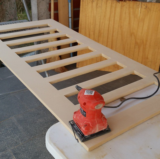Con sus propias manos Leandro está construyendo las cunas para sus hijas