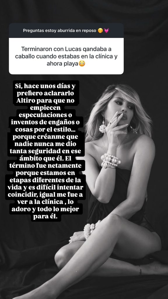 “¿Terminaron con Lucas? Andaba a caballo cuando estabas en la clínica y ahora en la playa”, escribió el internauta en Instagram.