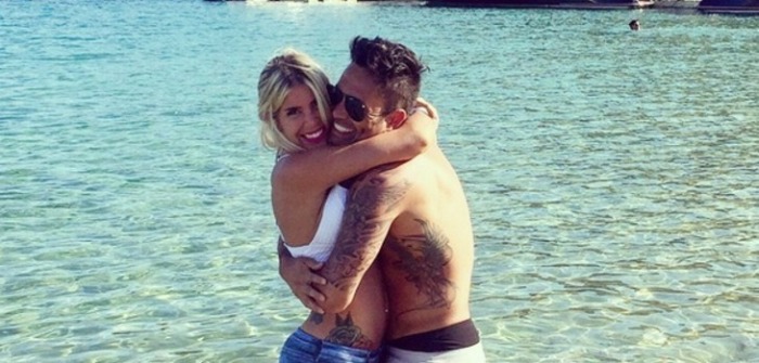 Toda la familia de blanco, su esposo Luis Jiménez, las trillizas y ella aparecen posando en una paradisíaca playa, donde las niñas van corriendo hacia sus padres que se encuentran con los brazos abiertos para recibirlas.