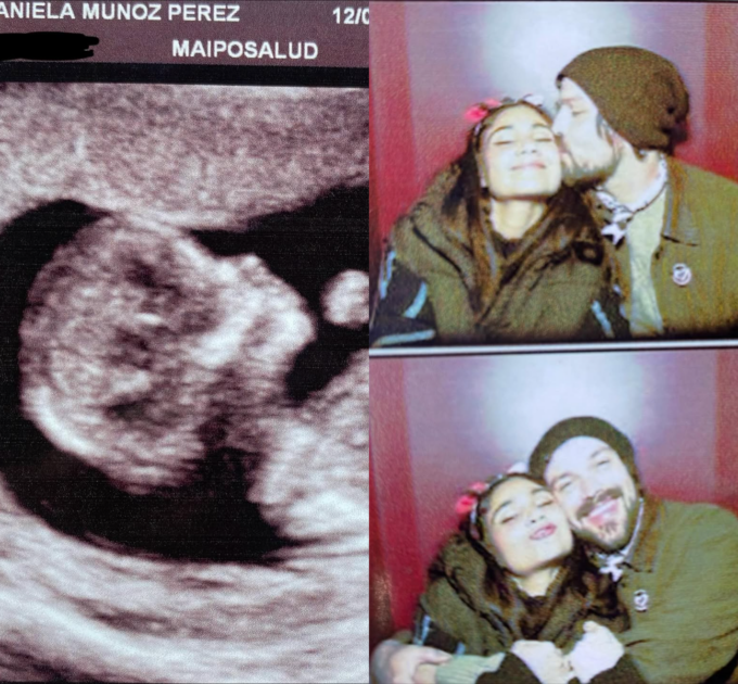 En uno de ellos se ve una ecografía, ropa de bebé y una imagen de ella embarazada.
