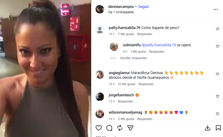“Maravillosa Denisse”; “Quedaste regia, pero no bajes más”; “Te sacaste como 10 años”; “Qué regia está Denisse. Excelente cambio”; “Te ves regia, ojalá no te pongas como la pesada de tu hermana”, fueron algunos comentarios que recibió.