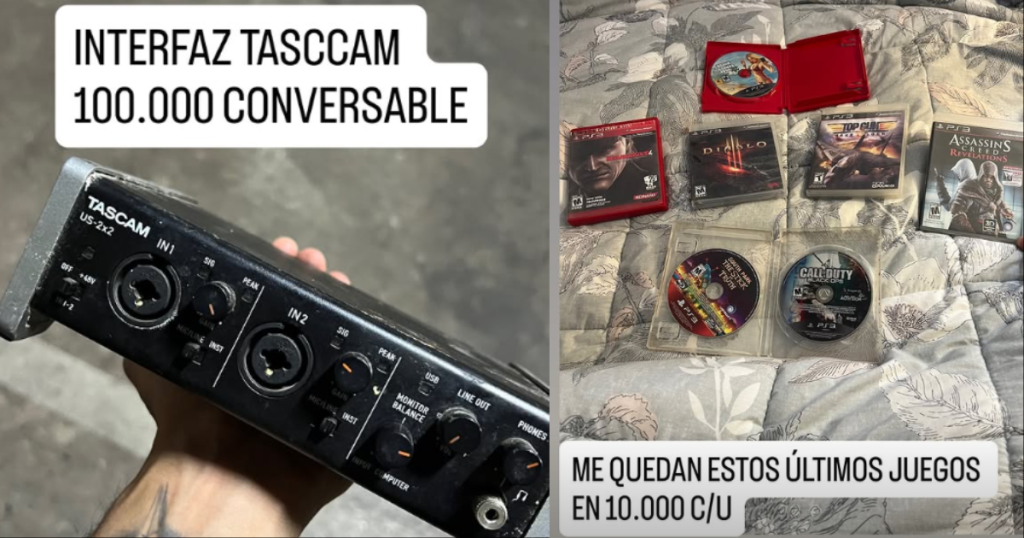 Entre los artículos que ofreció se encuentran una cama, lavadora, secadora, casco, veladores, un bajo, una maleta de maquillaje y hasta juegos de PlayStation 3 y PlayStation 4, entre otros objetos, todo publicado en sus historias de Instagram.