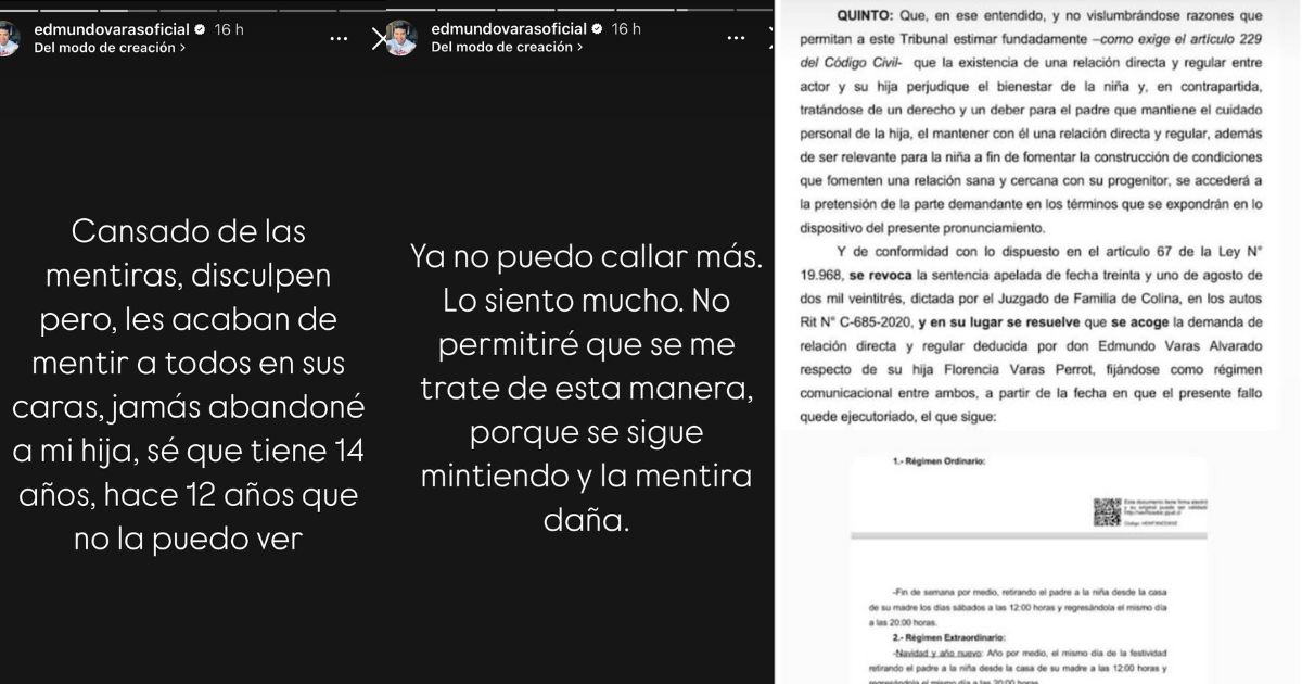 Edmundo Varas reveló un documento legal que evidencia la existencia de una resolución del Tribunal de Familia de Colina, fechada el 31 de agosto de 2023, que establece una relación directa y regular entre él y su hija.