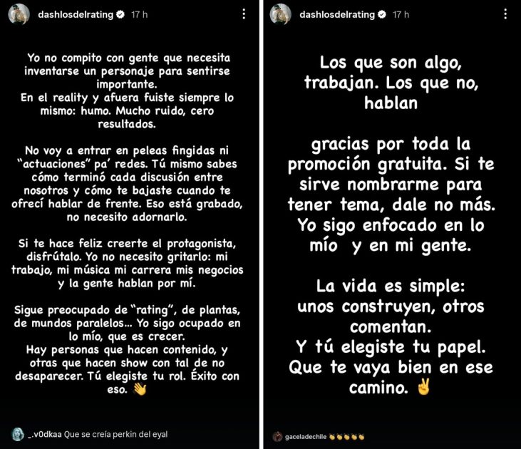 En esa misma línea, Dash aseguró que él no compite “con gente que necesita inventarse un personaje para sentirse importante”.