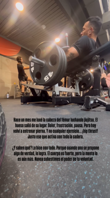 “Hace un mes me luxé la cabeza del fémur luchando jiu-jitsu. El hueso salió de su lugar”, contó en la red social que suma más de 600 mil seguidores.