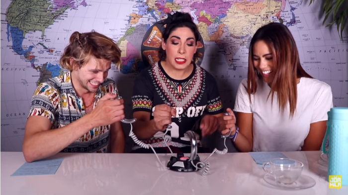 Sucede que en su más reciente video, Joaquín y Camila le realizaron una serie de preguntas a la reconocida transformista, mientras sostenían una máquina que otorga pequeños golpes eléctricos. El sistema funciona de la siguiente manera: cada participante sostiene un control con un botón, al activar el dispositivo empieza a sonar una música que en cualquier minuto puede parar. Al momento que se detiene se prende una luz verde y el último que presiona el botón, sufre un pequeño shock eléctrico.