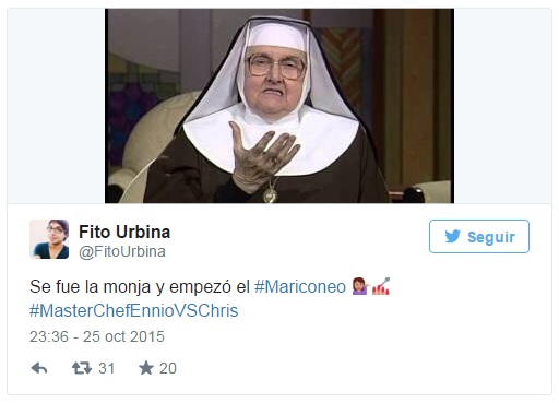 Al instante los memes llenaron el timeline de Twitter, usando el “mariconeo” como la palabra que sacó lo más pícaro y juguetón de los chilenos. Las bromas fueron desde la eliminación de la hermana Mónica Izquierdo -religiosa-, hasta insinuaciones entre los jurados.