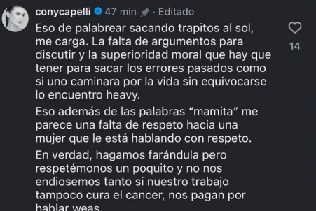 Una ácida réplica que no dejó indiferente a Cony Capelli, quien salió en defensa de Cata y criticó duramente la actitud de Danilo 21 hacia el anuncio de la modelo.