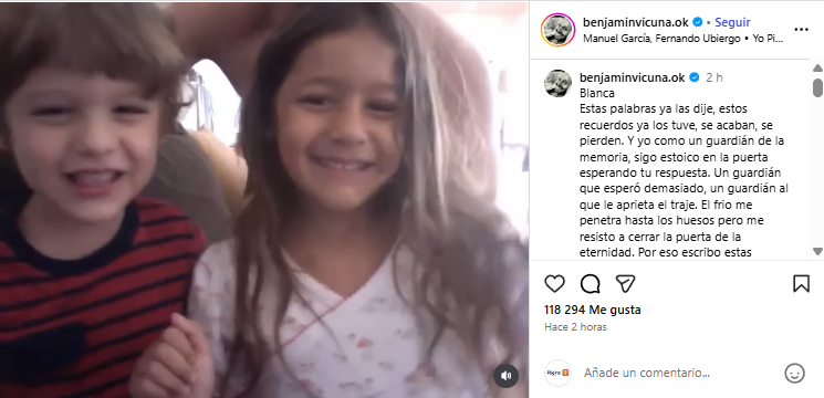 La mañana de este lunes, en un nuevo aniversario de la muerte de su hija Blanca, el actor Benjamín Vicuña compartió una emotiva carta en sus redes sociales.