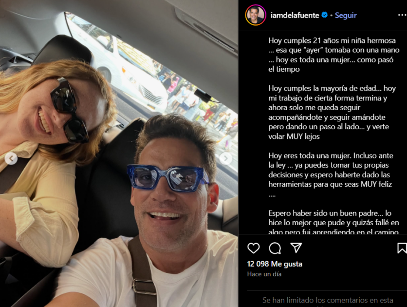 “Gracias por permitirme ser tu padre y por todos estos años que hemos vivido”, destacó en la publicación que suma más de 12 mil “me gusta”.