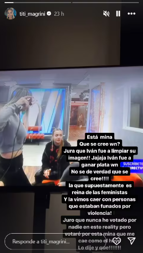 “¿Esta mina qué se cree? Jura que Iván fue a limpiar su imagen, fue a ganar plata. No sé, de verdad, ¿qué se cree?”, escribió en la red social.