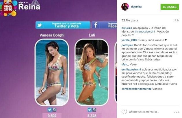 Luego de que “Luli” ganara la corona viñamarina 2016, Vanesa Borghi no quedó en el olvido, ni menos para su esposo, Danilo Sturiza, él que mostró todo su amor y apoyo a la modelo argentina por medio de su cuenta de Instagram.