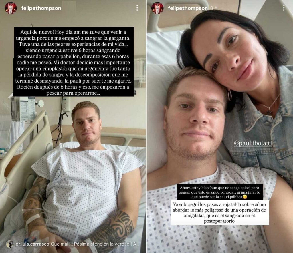 Ex Gran Hermano, Felipe Thompson, se desmayó en urgencias tras cirugía: “Seis horas sangrando”