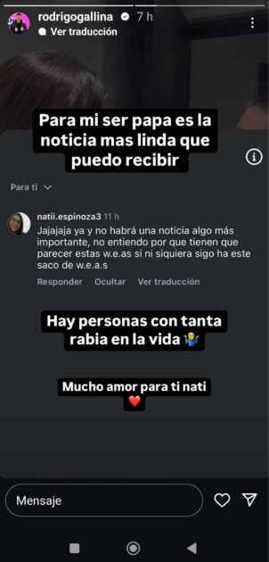 En vez de responder en el mismo tonto, Gallina expuso el mensaje en sus historias de Instagram y le respondió con claridad.