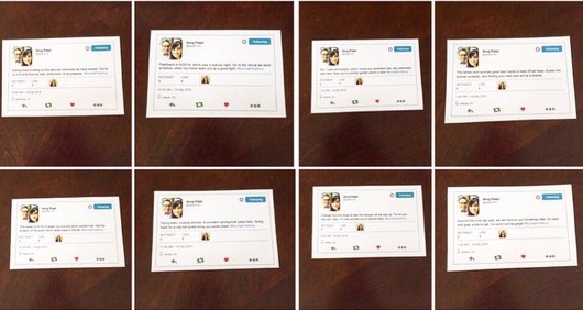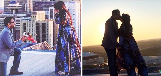 La terraza de un hotel fue el sitio escogido para pedírselo directamente, con un tweet impreso, en el que declaró desear sellar su amor en santo matrimonio. Sin duda una hermosa historia de amor digital.