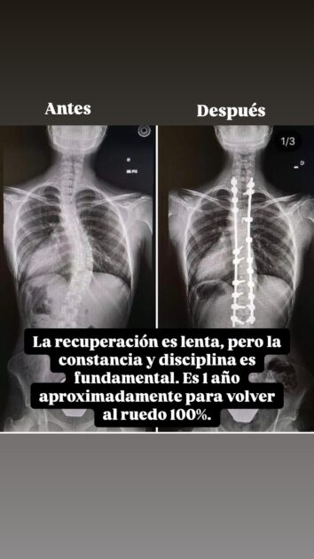 “Me operé hace 10 años por una escoliosis con el doctor Samuel Pantoja y su equipo”, partió señalando en sus historias la hija de Karen Doggenweiler.
