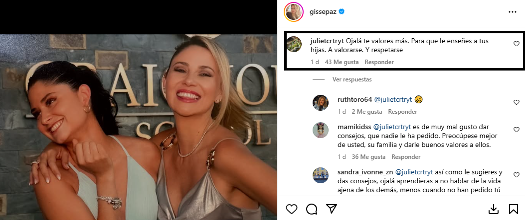 “Ojalá te valores más. Para que le enseñes a tus hijas a valorarse y respetarse”, escribió una usuaria identificada como Julieta.