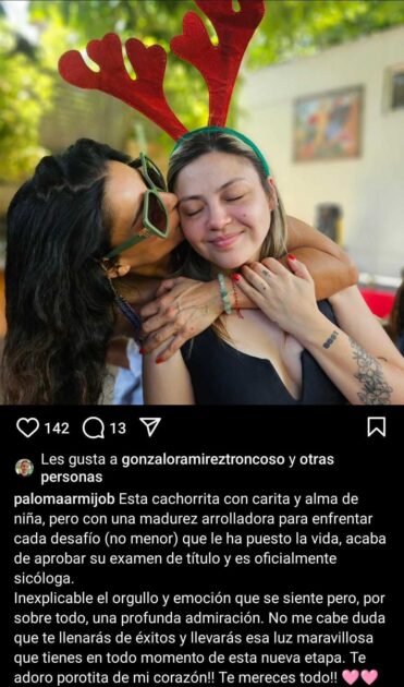 “Esta cachorrita, con carita y alma de niña, pero con una madurez arrolladora para enfrentar cada desafío (no menor) que le ha puesto la vida, acaba de aprobar su examen de título y es oficialmente psicóloga”, señaló.