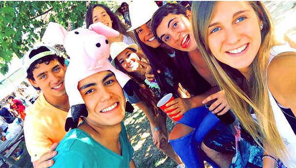 Junto a sus compañeros de curso, se ve a la rubia disfrutando de la tradicional fiesta “Uaild on”, celebración al aire libre en que se recibe con todo a los nuevos estudiantes.