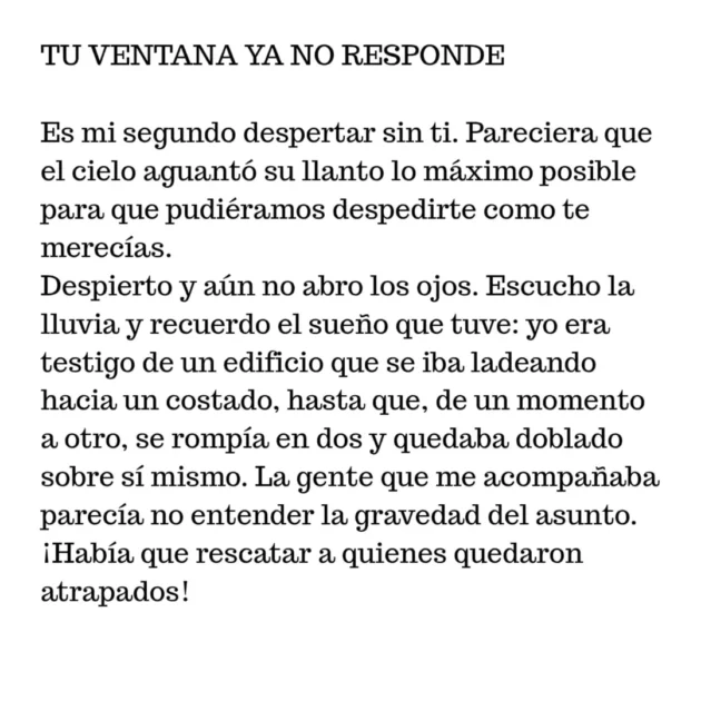En el texto -titulado provisoriamente Tu ventana ya no responde– escribió:
