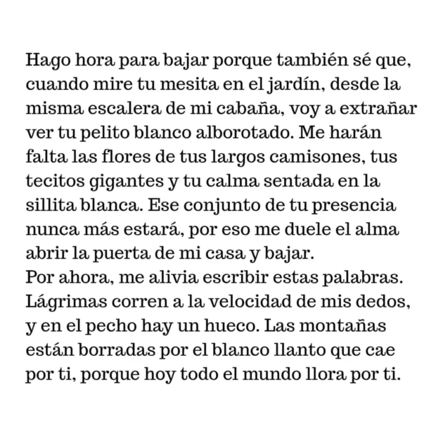 “Es mi segundo despertar sin ti. Pareciera que el cielo aguantó su llanto lo máximo posible para que pudiéramos despedirte como te merecías.”