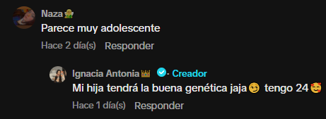 Una usuaria le dedicó tiempo a la influencer y le dijo que “era muy adolescente”. A lo que Ignacia Antonia no se contuvo y le respondió: “Mi hija tendrá buena genética. Tengo 24”.