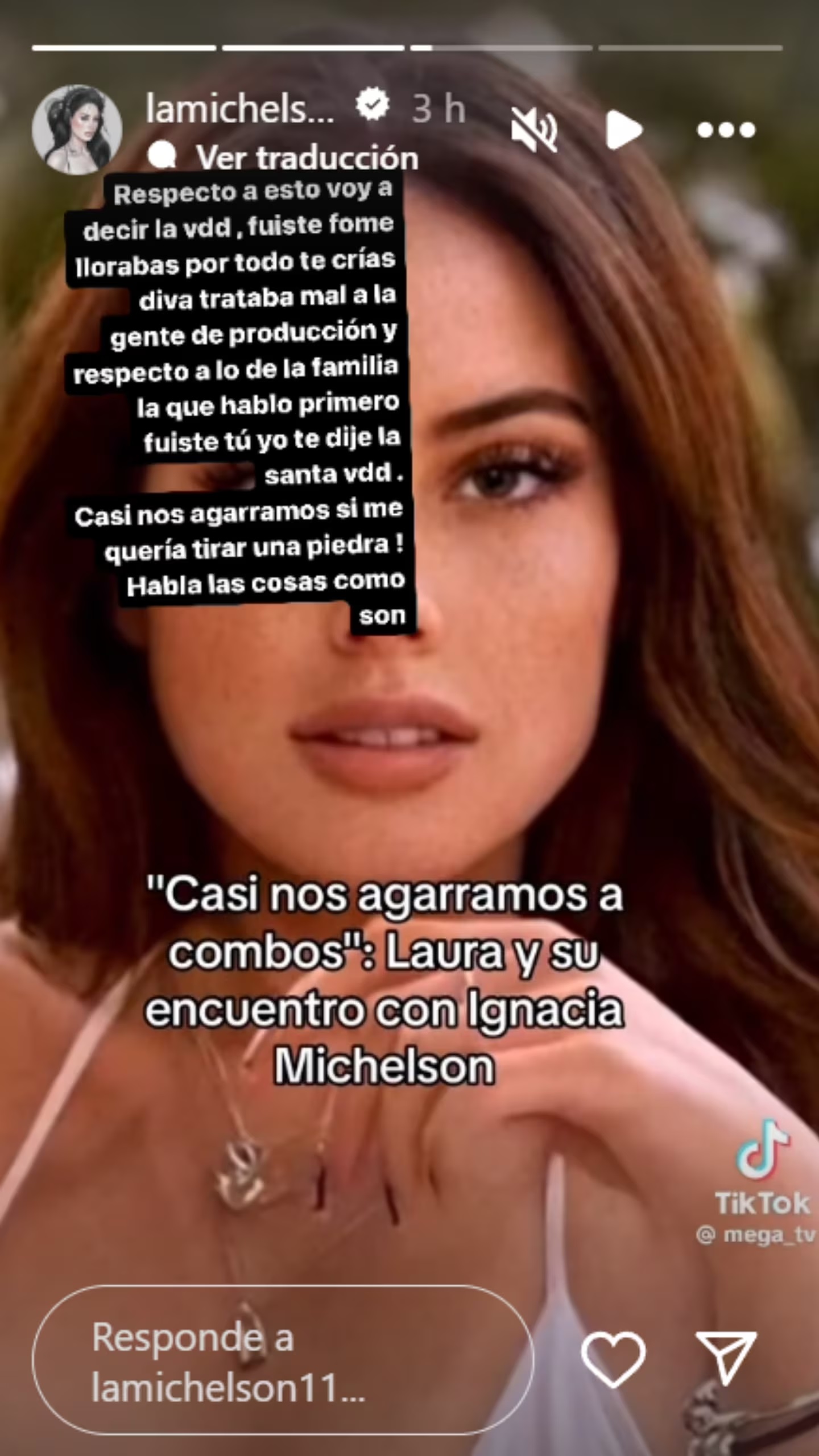 Además, agregó que: “Respecto a la familia, la que habló primero fuiste tú y yo te dije la santa verdad. Casi nos agarramos. Sí, me querías tirar una piedra. Cuenta las cosas como son“, desafió Michelson a Laura.