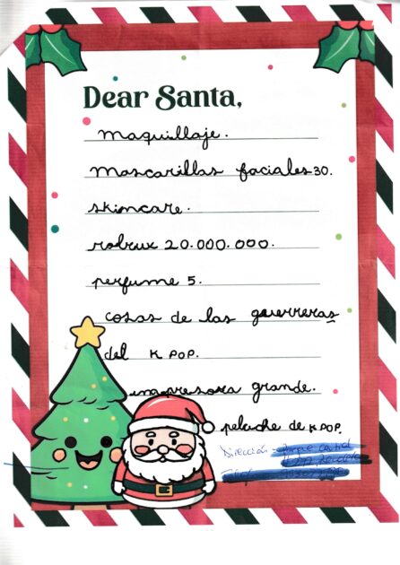 “Querido Santa Claus, me llamo Delia y estudio derecho. Este año he trabajado muy duro (…) Me gustaría una tablet con teclado y lápiz para facilitar mis deberes”, se lee en una de las cartas que fue tachada de “barsa” en redes.