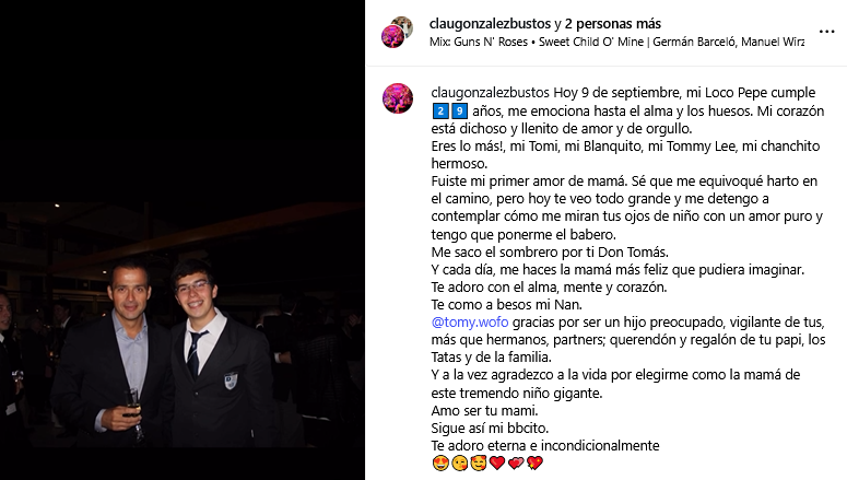 “¡Eres lo más! Mi Tomi, mi Blanquito, mi Tommy Lee, mi chanchito hermoso. Fuiste mi primer amor de mamá”, agregó.