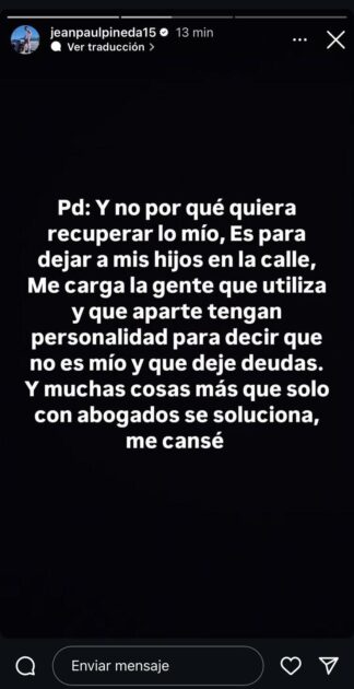 Jean Paul Pineda causó extrañeza en redes sociales tras compartir un misterioso mensaje en su cuenta de Instagram.