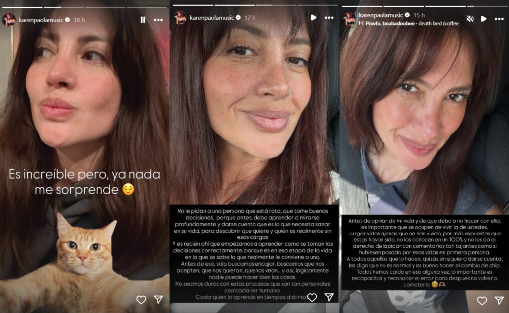 La cantante nacional compartió una extensa reflexión en sus stories de Instagram, donde habló sobre los juicios hacia su vida personal.