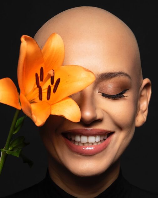 La actriz publicó una fotografía de su rostro junto a una azucena naranja, mostrando que ya no tiene cabello.