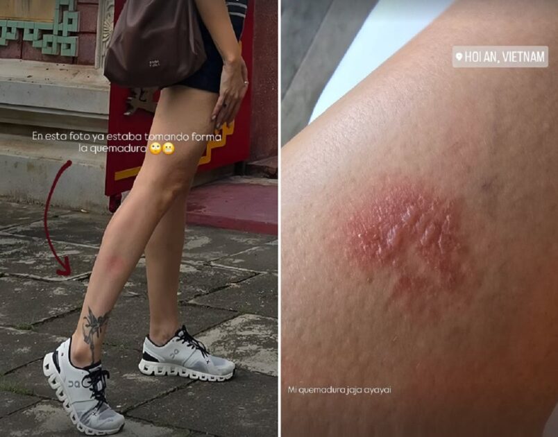 Tras esto, compartió una imagen de cómo quedó su piel tras el incidente, y cómo se formó una herida horas después.