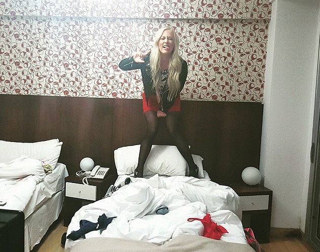 Ruda haciendo morisquetas sobre una desordenada cama de hotel sin hacer y con prendas tiradas por el lugar dejan entrever la alocada noche. El mensaje que acompaña la estática corrobora lo anterior. “Gracias por una noche INCREIBLE chicas”, manifestó Vesta destacando a sus amigas que la acompañaron.
